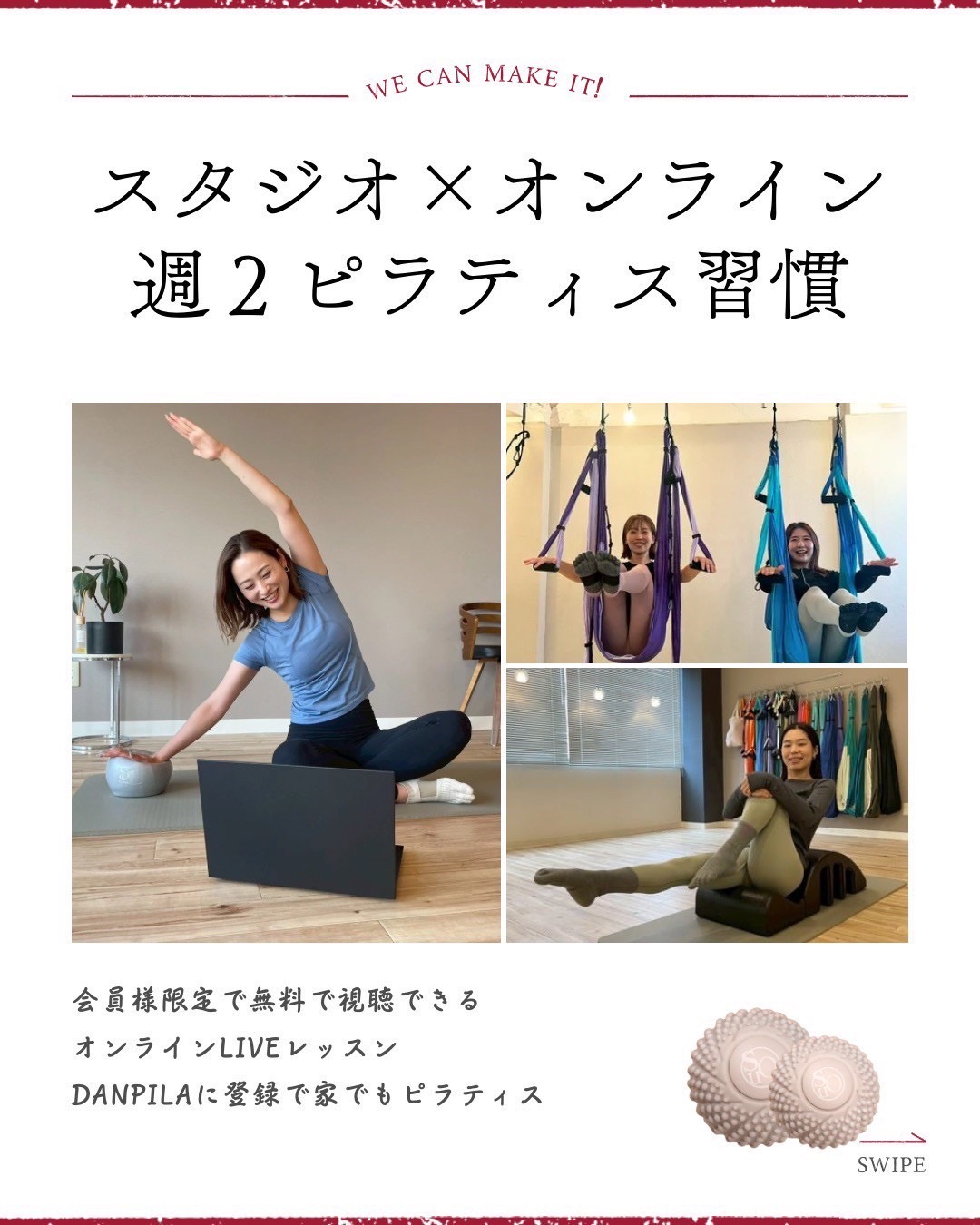 オンラインLIVEレッスン danpila に登録いただくと、ご自宅でもピラティスが受けられます!